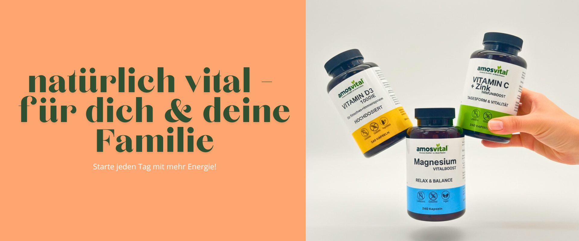 Veganes Magnesium für Muskelentspannung, Nervenstärke und Energie. Der amosvital Magnesium Vitalboost unterstützt Relax & Balance – ideal bei Stress, Sport & Verspannungen. 240 vegane Kapseln.